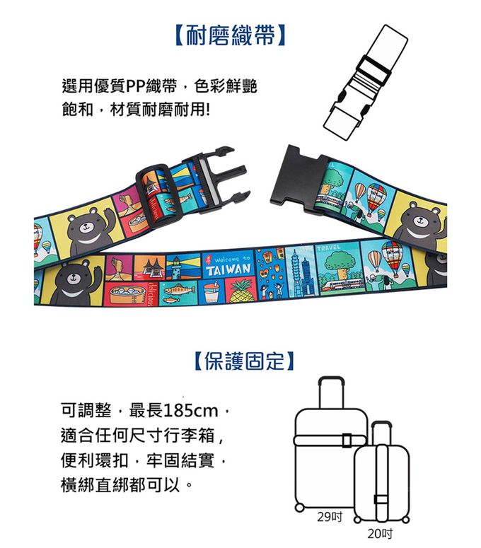 行李束帶材質鮮豔飽和、獨家台灣意象設計