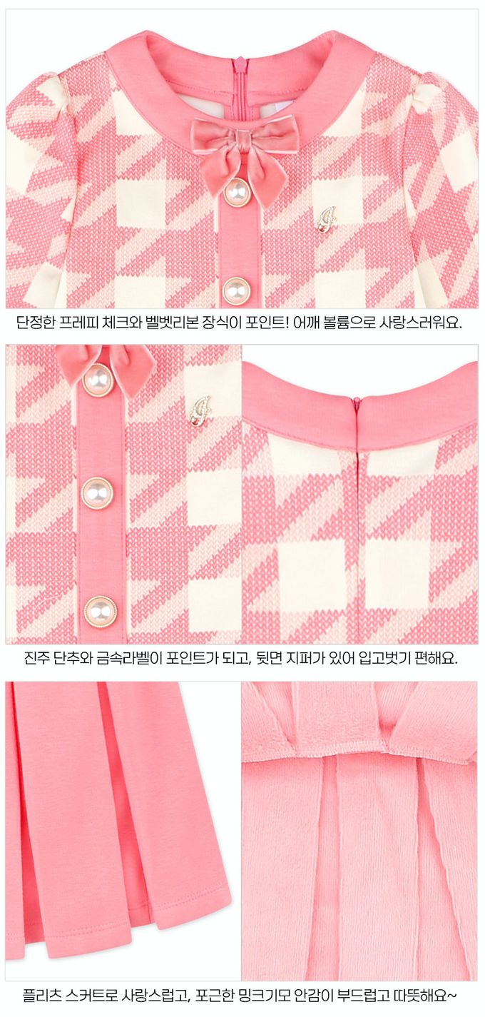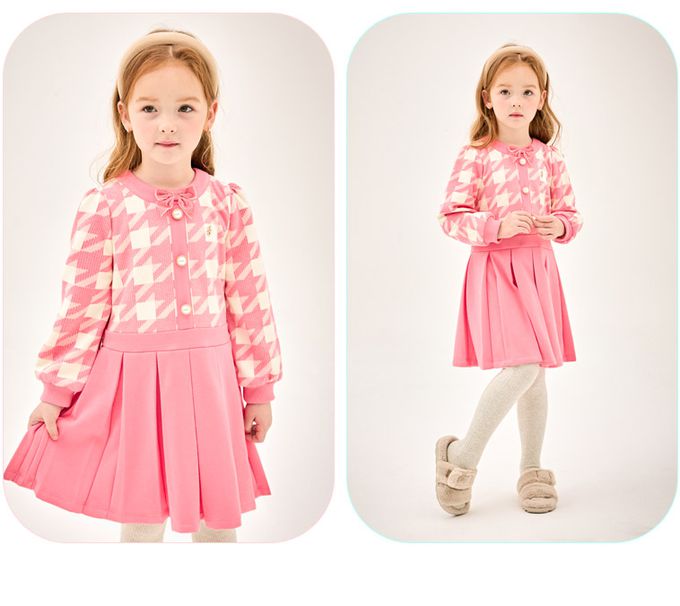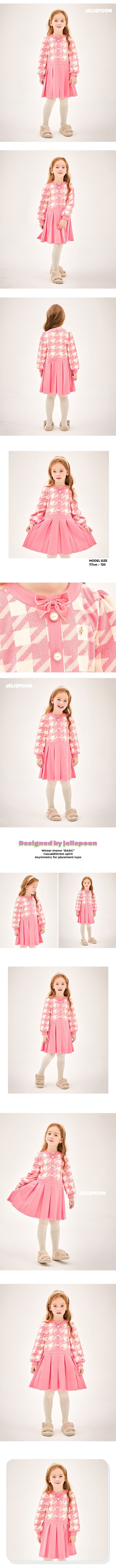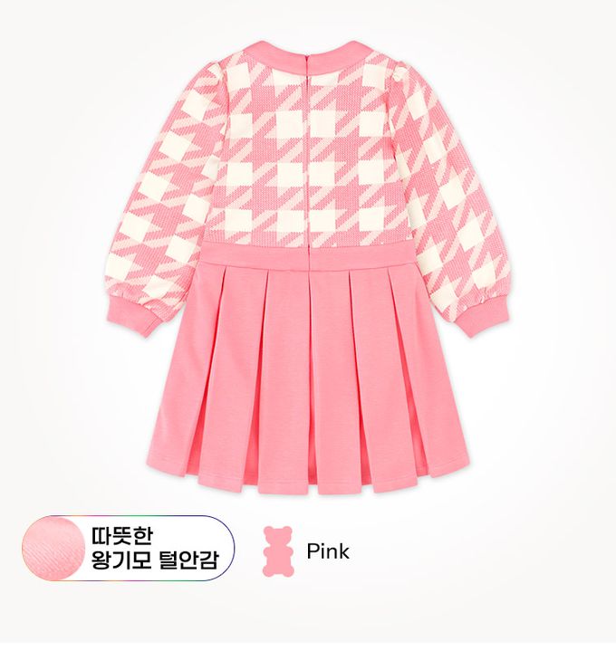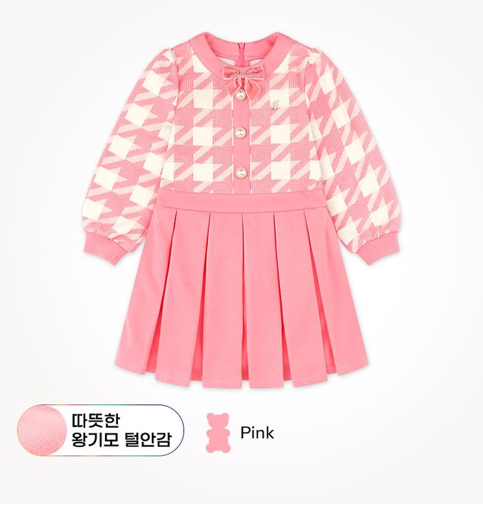 韓國 Jelispoon - 小淑女千鳥格紋內磨毛百褶裙洋裝-粉