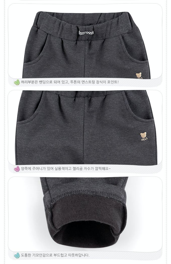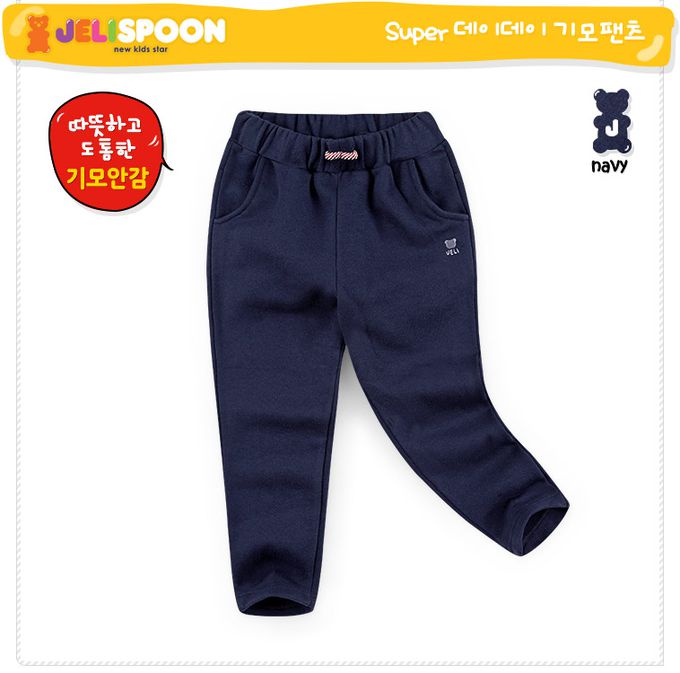 韓國 Jelispoon - 鬆緊腰日常穿搭內磨毛長褲-深藍