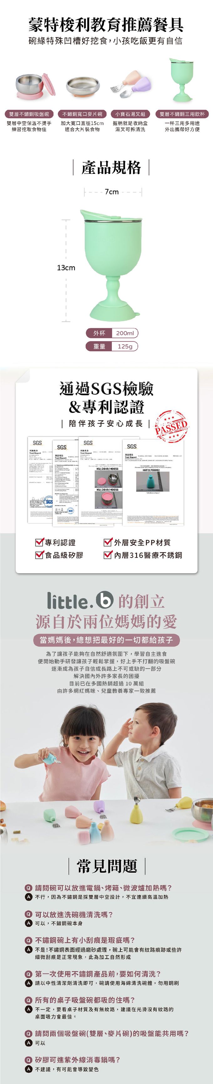 美國little.b - 316雙層不鏽鋼三用學飲杯-甜美粉-重量:125g 容量:200ml