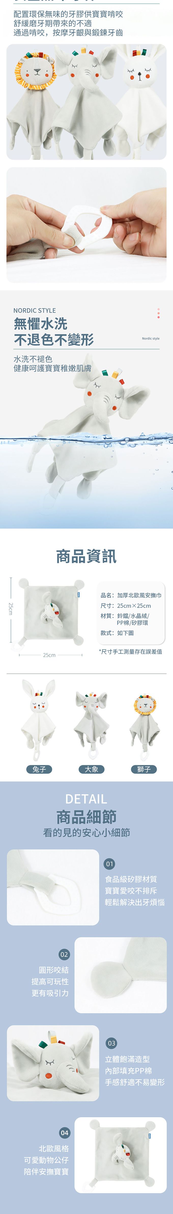 寶寶安撫巾 安撫玩偶 鈴鐺親膚安撫咬咬玩具-大象