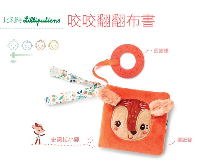 這本柔軟的小布書充滿了驚喜和冒險,有趣的畫風與內襯響紙的沙沙聲,成功吸引了寶寶的注意,配戴一個環形牙環,可以幫助剛長牙的寶寶舒緩牙齦的不適。