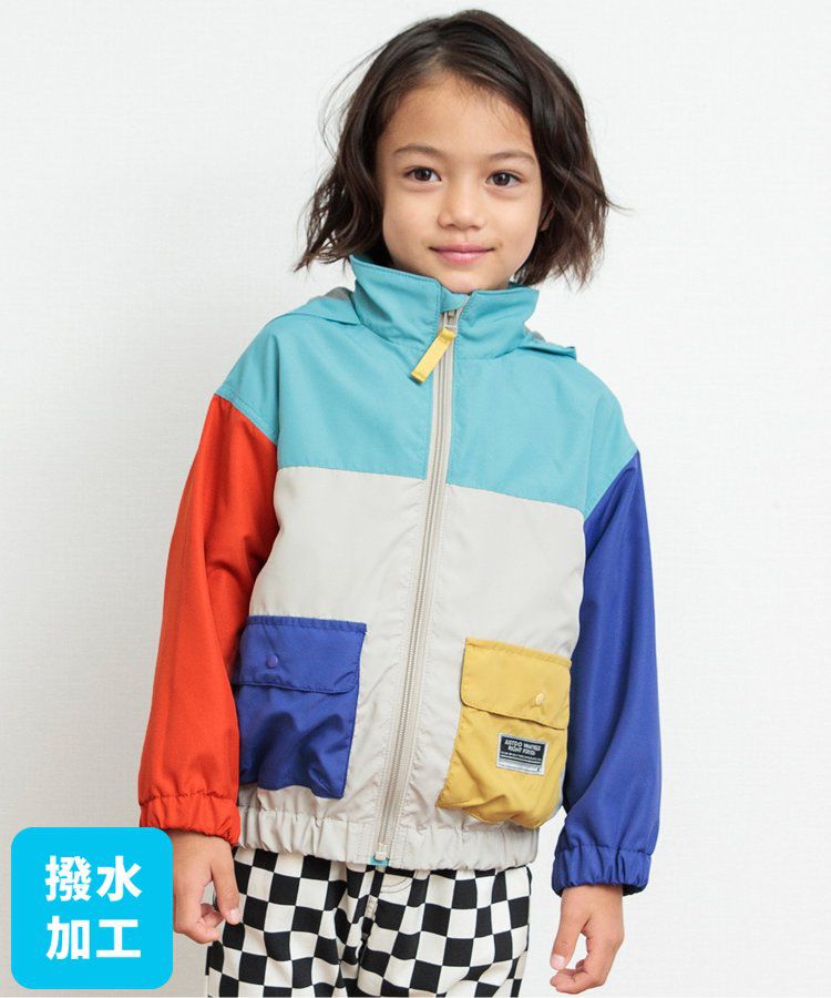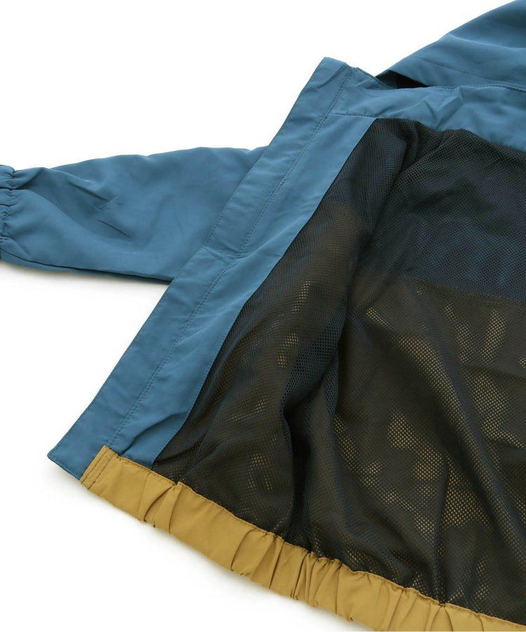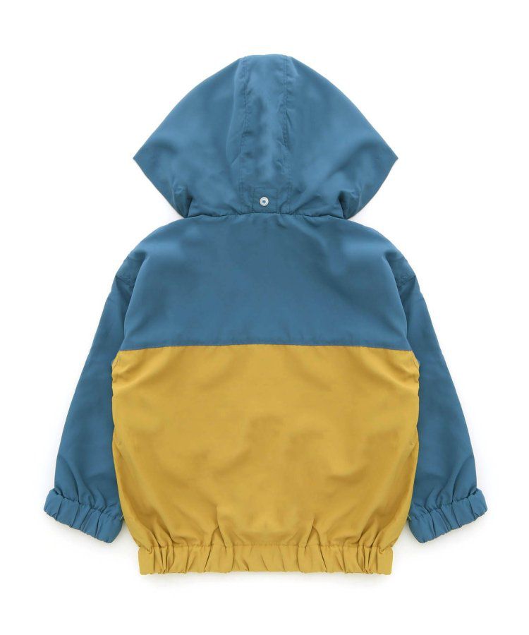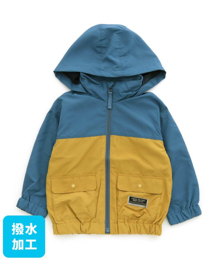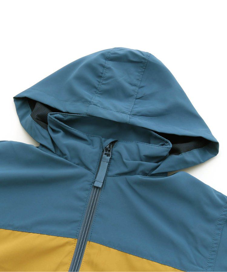 日本 BREEZE - 潑水加工 多彩帽可收薄風衣外套-藍黃系