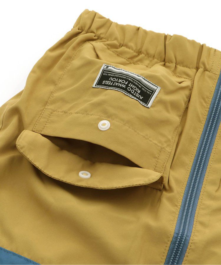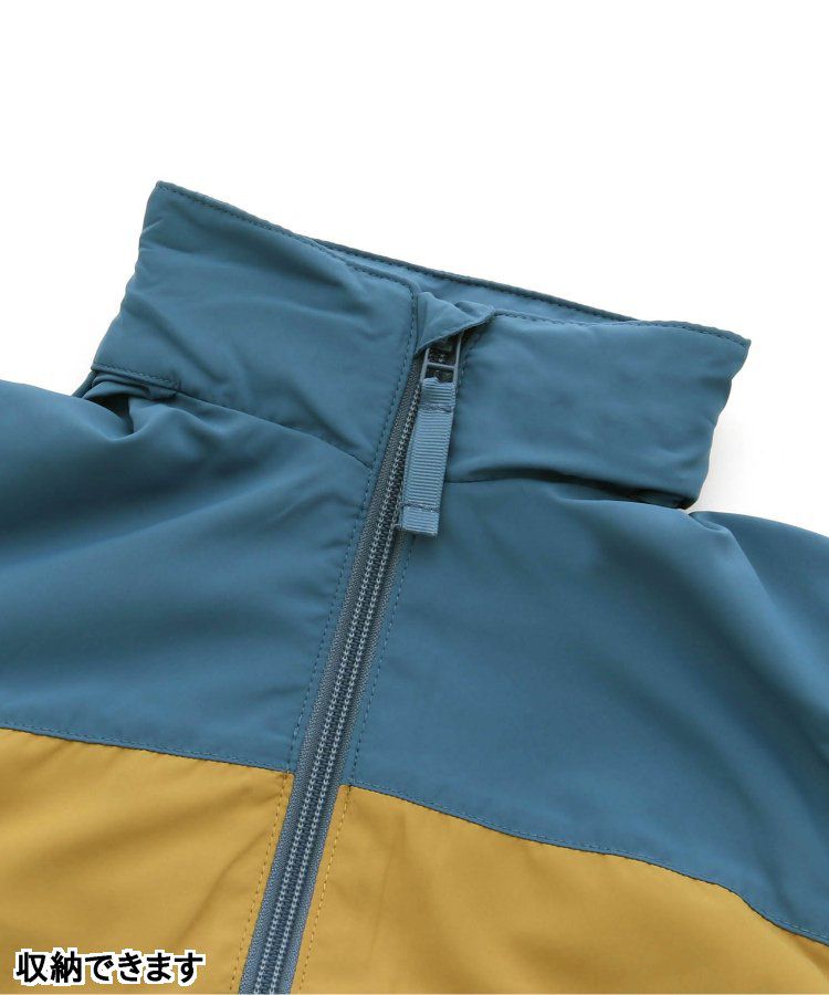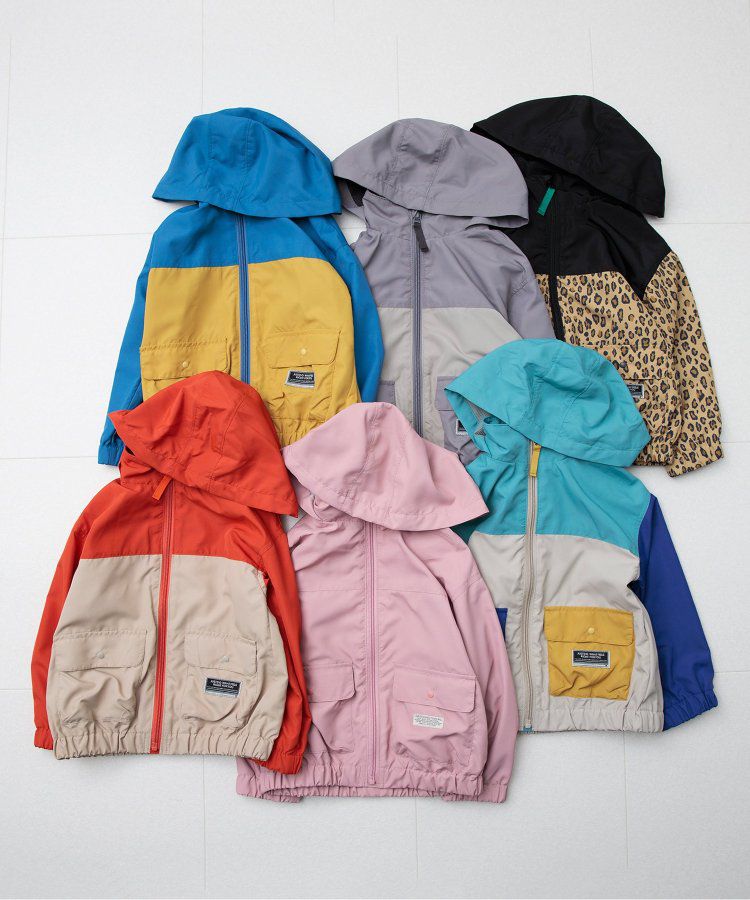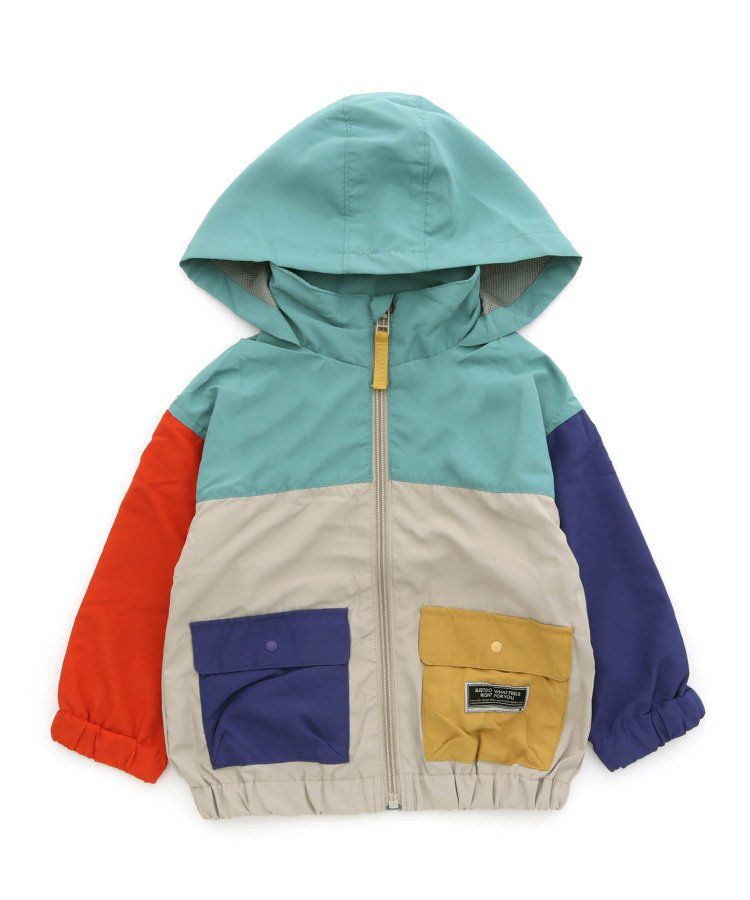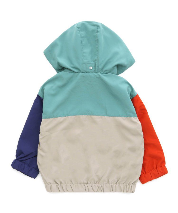 日本 BREEZE - 潑水加工 多彩帽可收薄風衣外套-藍黃系