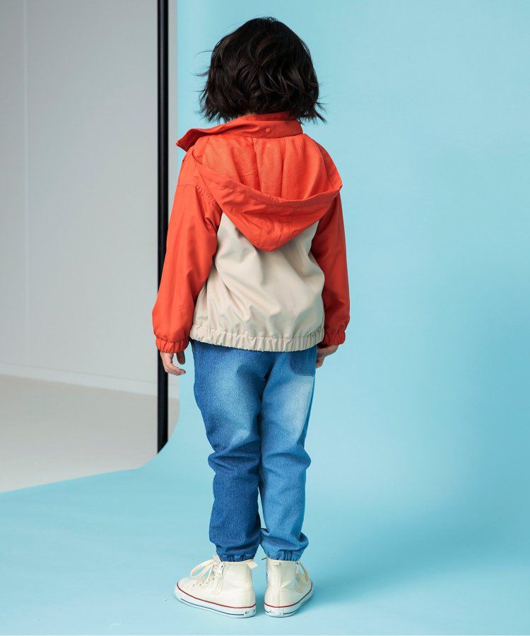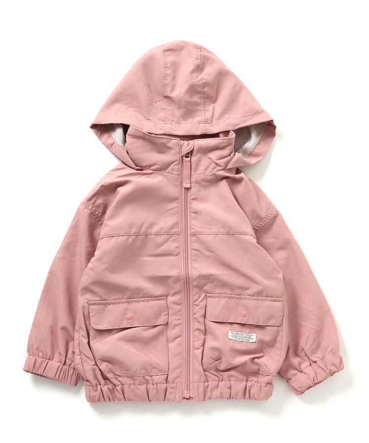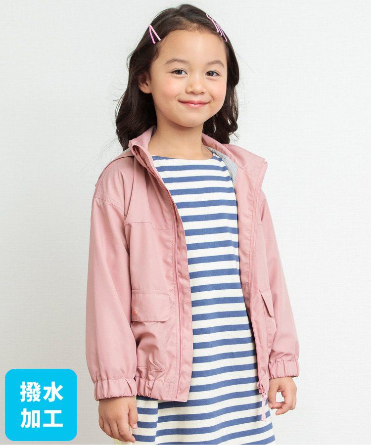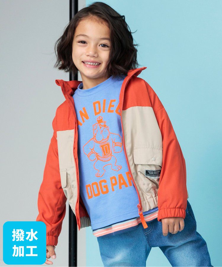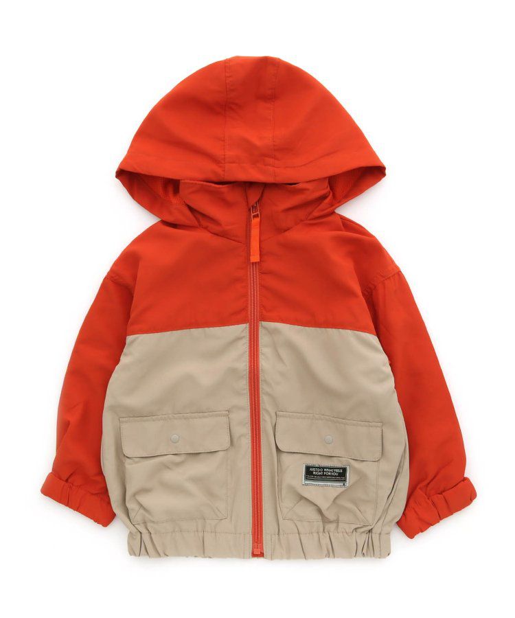 日本 BREEZE - 潑水加工 多彩帽可收薄風衣外套-橘色系
