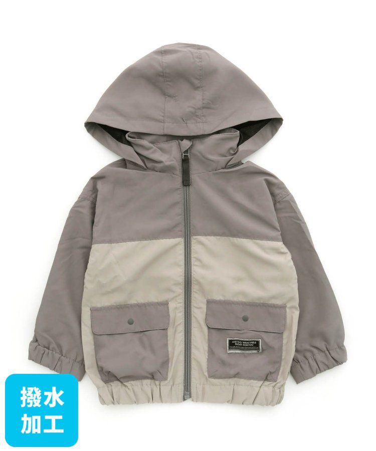 日本 BREEZE - 潑水加工 多彩帽可收薄風衣外套-灰色系