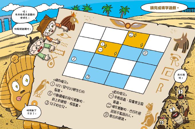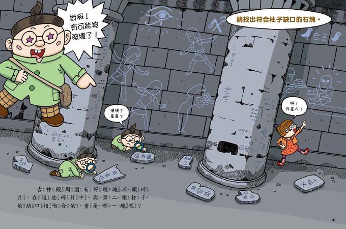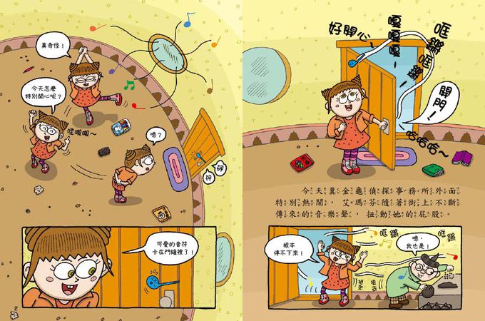 快來與書中的雙胞胎偵探兄妹一起辦案吧!在每集的故事中,小讀者們都會碰到各種趣味的任務,例如利用改變文字排列,看懂紙條裡隱藏的暗號、找出圖畫中隱藏的物品、穿過各式各樣的迷宮,甚至還得利用科學原理如彩虹的排列及混色原理,來解出闖關方法!