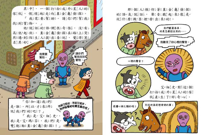 想看雙胞胎偵探聯手出擊,會衝撞出什麼有趣的火花。偵探頭上的便便髮型,很吸引孩子的目光(偷笑)──讀者Yi-** Ch*ng評論