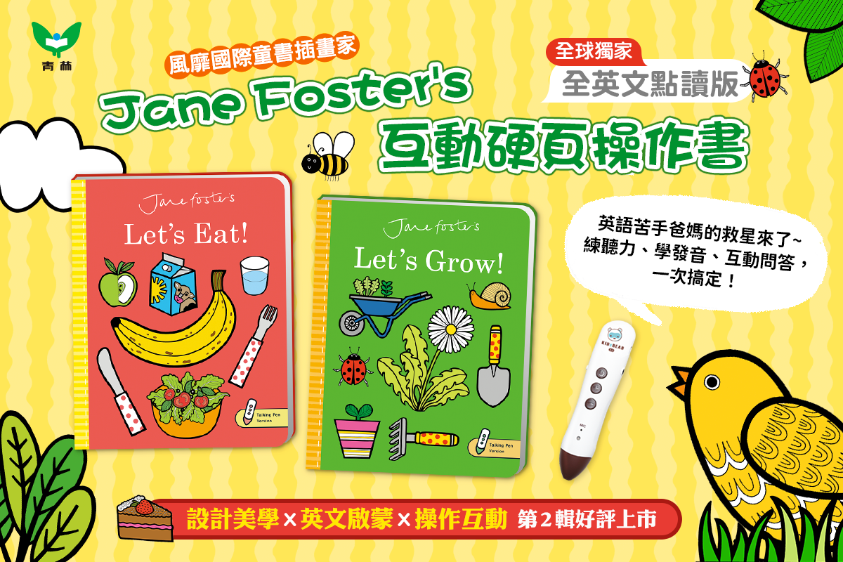 第二輯共有2種生活化主題:《Let's Eat!》《Let's Grow!》皆是全英文點讀及全文朗讀,將簡易的詞彙運用至繪本中,搭配色彩鮮豔的插圖,讓孩子從小培養美感!