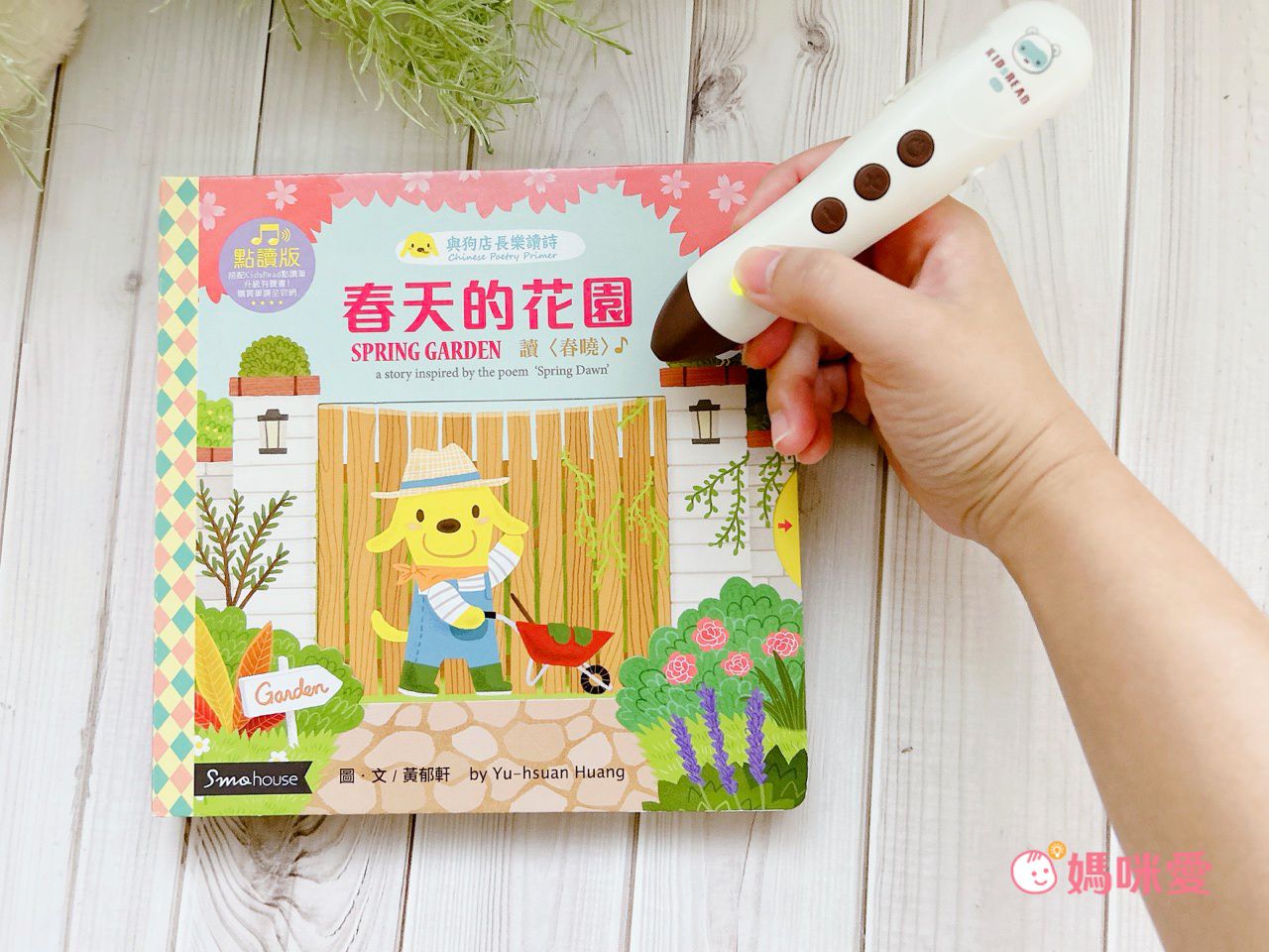 內頁可點讀的部分為:右下角的中英句子、左上角的詩句、音符、漢語拼音。點右下角中文句子將會播放中文音檔唸出句子;點英文句子則會播該英文句子。不僅如此,音檔在唸句子的過程有添加背景音樂,讓整個閱讀氛圍更活潑~