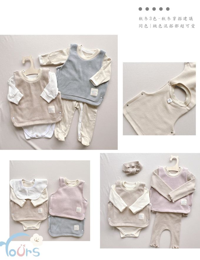 -新生兒親膚衣物(嬰幼兒包巾與背巾、包屁衣、學習褲、紗布衣等)。