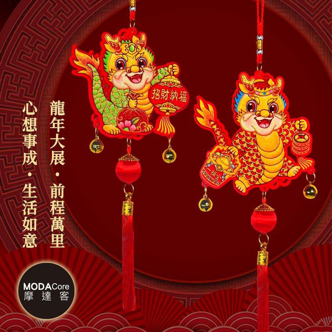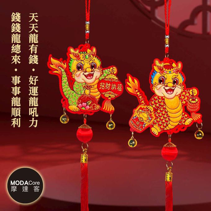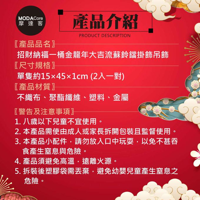 品名:摩達客◉春節開運招財◉招財納福一桶金龍年大吉流蘇鈴鐺掛飾吊飾(2入一對)