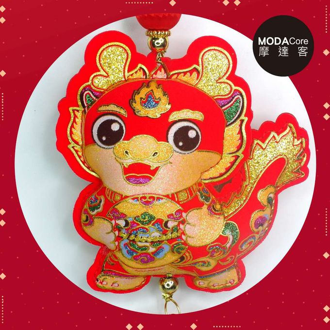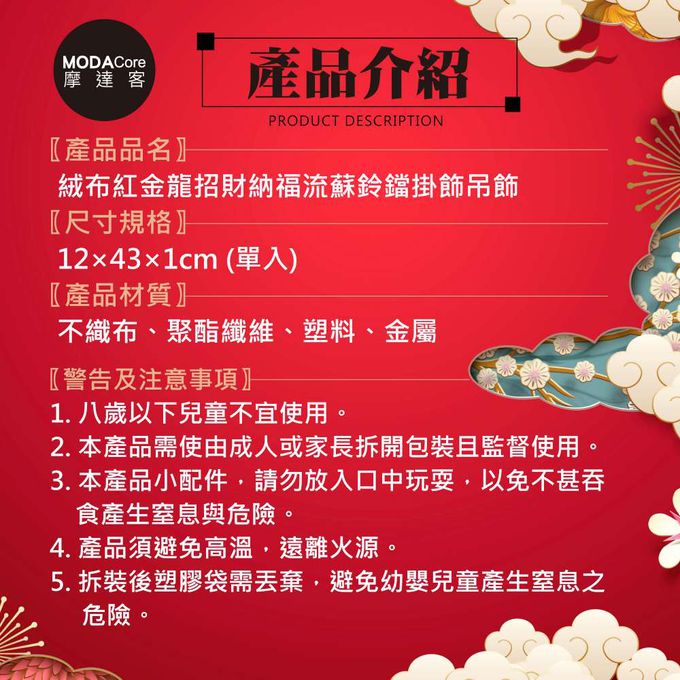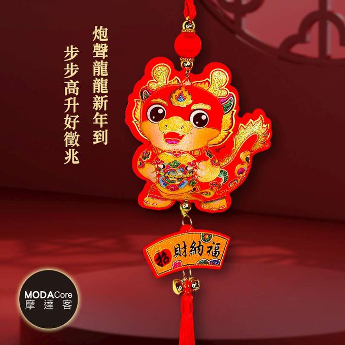 品名:摩達客◉春節開運招財◉絨布紅金龍招財納福流蘇鈴鐺掛飾吊飾