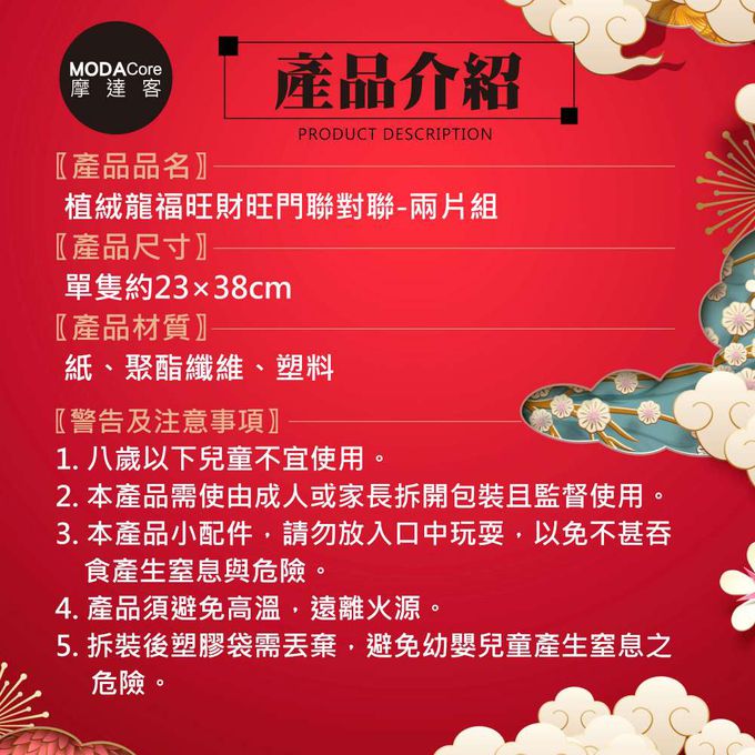 品名:摩達客◉春節開運招財◉植絨龍福旺財旺門聯對聯春聯兩片組