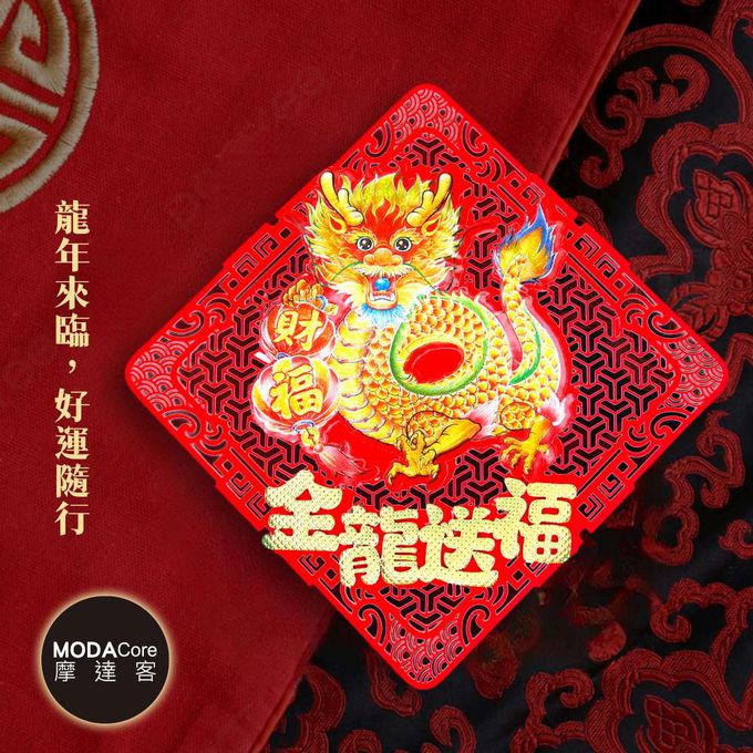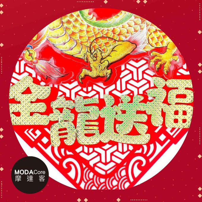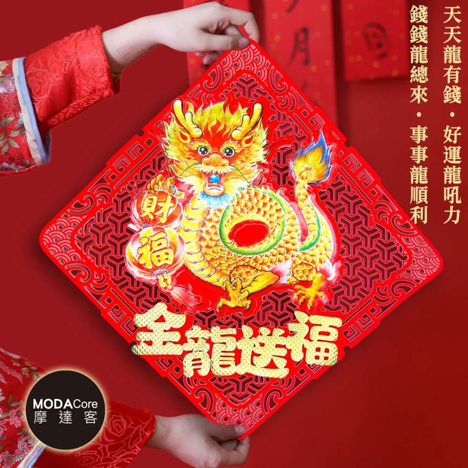 品名:摩達客◉春節開運招財◉簍空剪紙炫彩刺繡金龍送福斗方-單片春聯