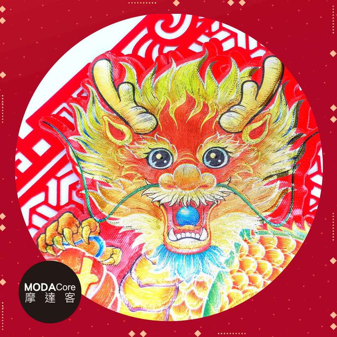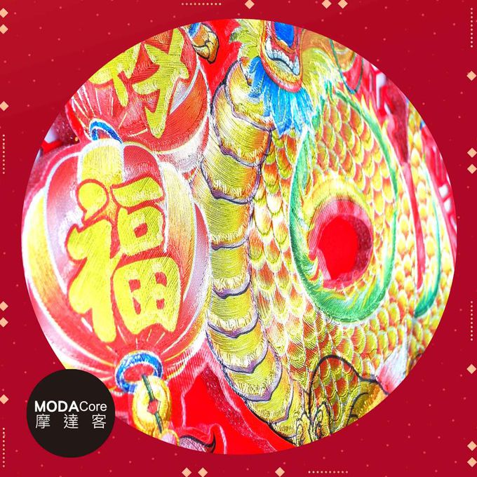 摩達客◉春節開運招財◉簍空剪紙炫彩刺繡金龍送福斗方-單片春聯