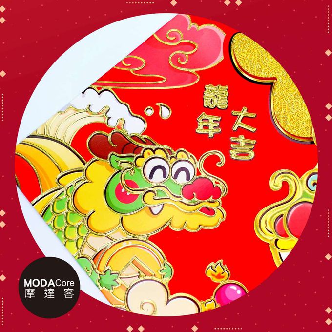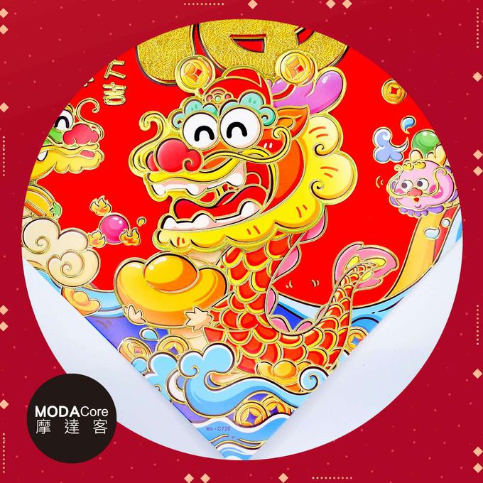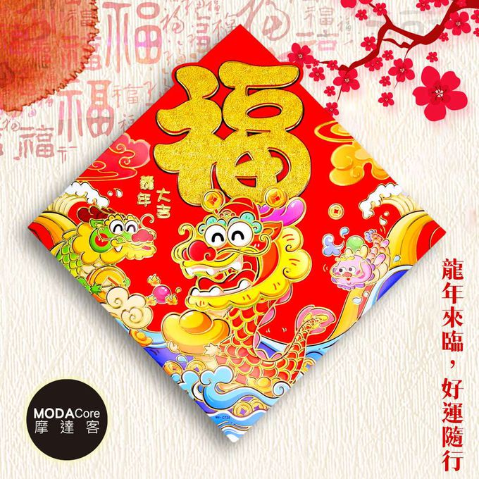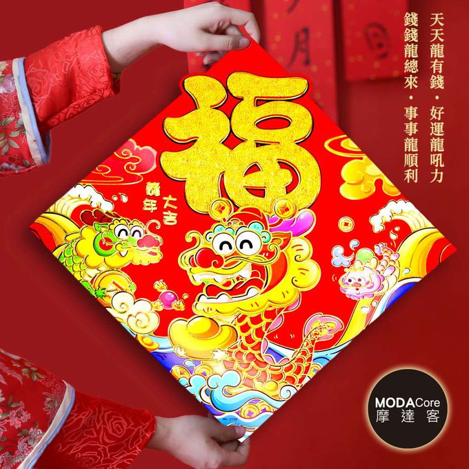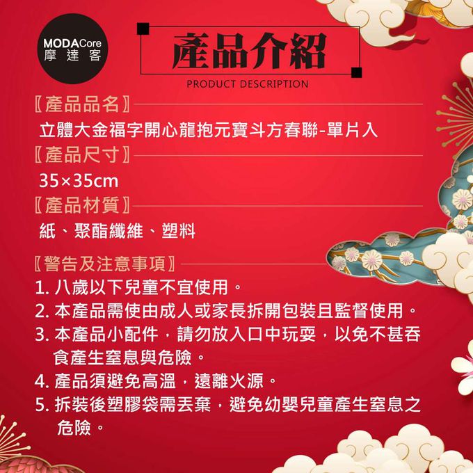品名:摩達客◉春節開運招財◉立體大金福字開心龍抱元寶斗方-單片春聯