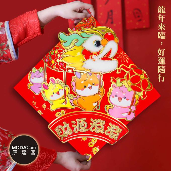 品名:摩達客◉春節開運招財◉立體絨毛四小龍舞龍財源滾滾斗方-單片春聯門貼