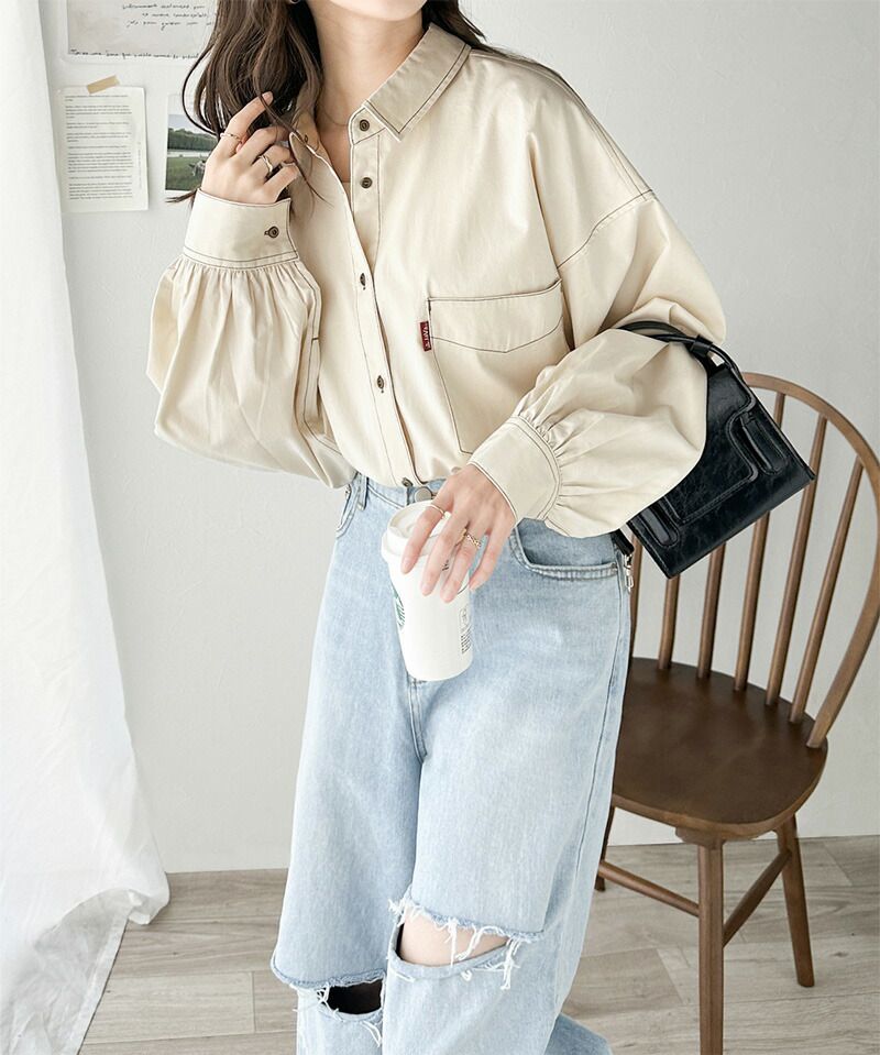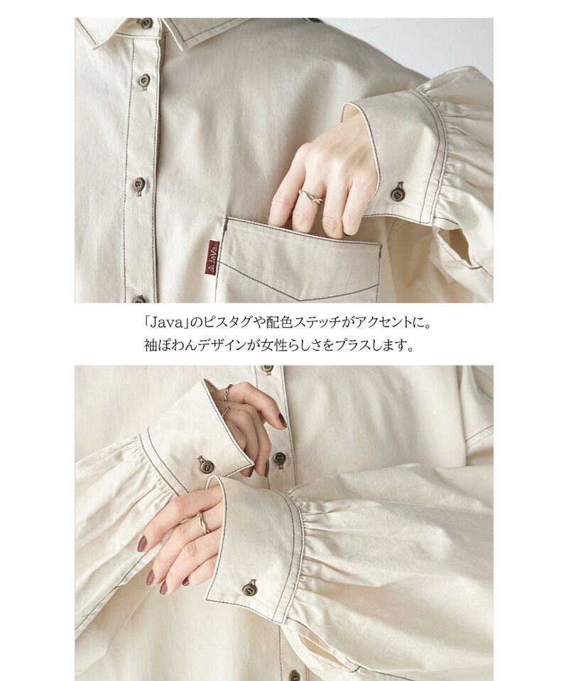 日本 Classical Elf - Java聯名 俐落感線條寬版襯衫-純棉-象牙白