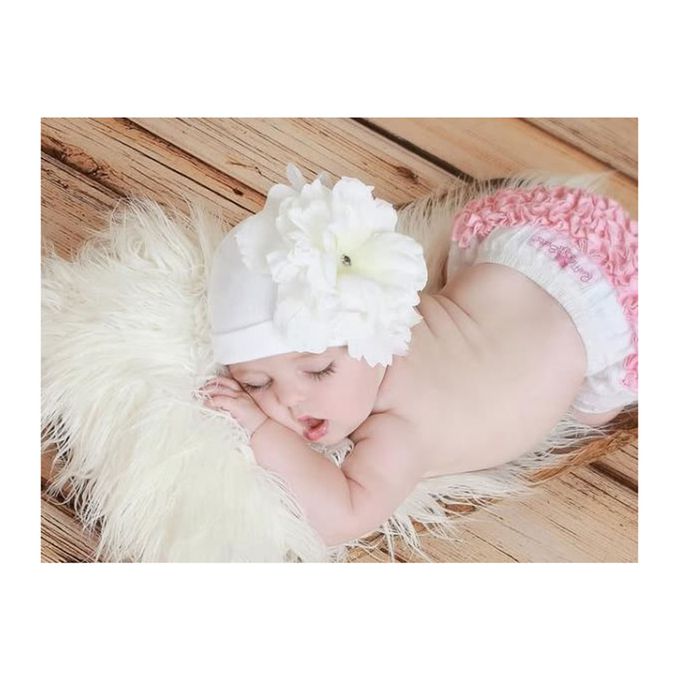 100%純棉帽-白色棉帽+白色大牡丹 (18M-3Y)