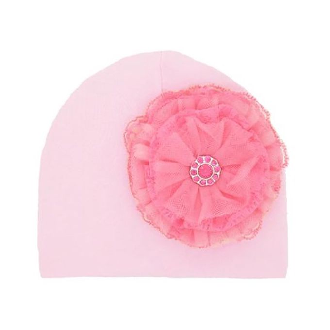 100%純棉帽-淡粉棉帽+糖果粉蕾絲玫瑰 (18M-3Y)