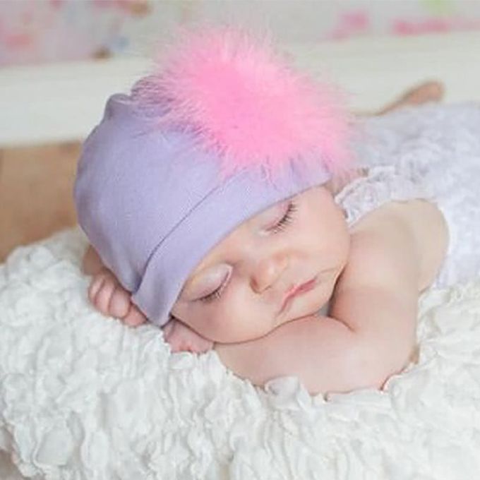 100%純棉帽-薰衣草紫棉帽+甜蜜糖果粉大鸛毛 (4-6Y)
