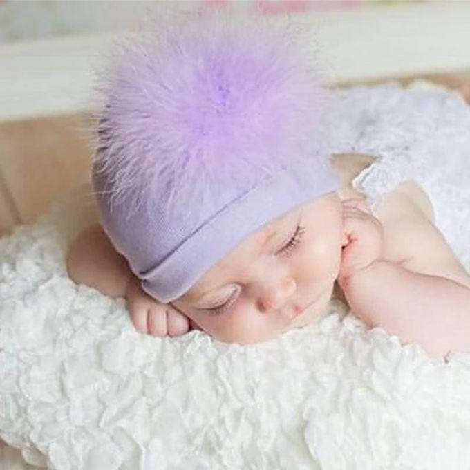 100%純棉帽-薰衣草紫棉帽+薰衣草紫大鸛毛 (4-6Y)