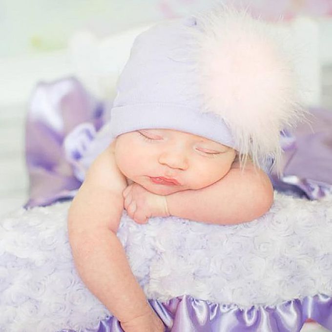 100%純棉帽-薰衣草棉帽+淡粉大鸛毛 (4-6Y)