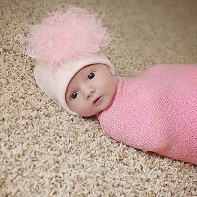 100%純棉帽-淡粉棉帽+淡粉大鸛毛 (4-6Y)