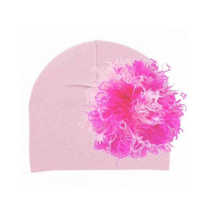 100%純棉帽-淡粉棉帽+粉覆盆子大鸛毛