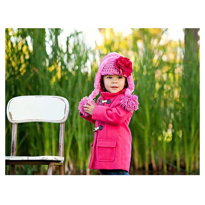100%純棉毛帽-糖果粉保暖毛帽+亮眼覆盆子玫瑰