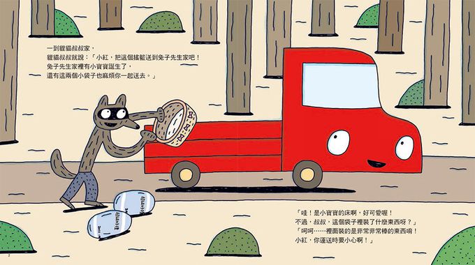 「叭叭——出發囉!」小卡車小紅要送貨到兔子先生家,現在就要出發了!他能夠順利送到嗎?