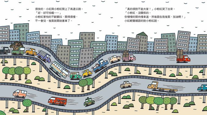 這次與小紅一同送貨的是總是行事悠哉卻也熱心助人的小黃。朝著目的地悠遊水族館出發,看到小黃總是給予困難的車子們幫助、因為小黃的緩慢而得以享受美麗的風景,小紅的心境也漸漸改變……慢慢來,能夠飽覽更多沿途風光;慢慢來,也很不錯!快跟著小黃一起慢下腳步,欣賞美好景色,感受互助溫暖吧!