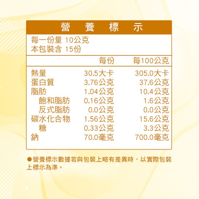 過敏原:本產品含魚類及其製品,不適合其過敏體質者食用