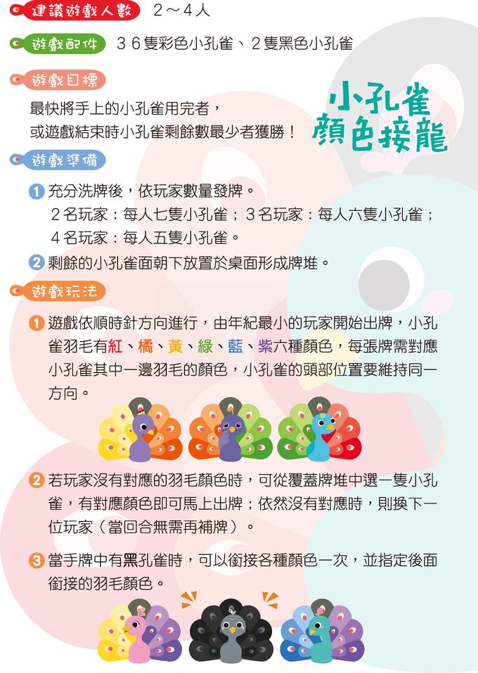 率先將手中小孔雀出完的玩家就獲勝囉!