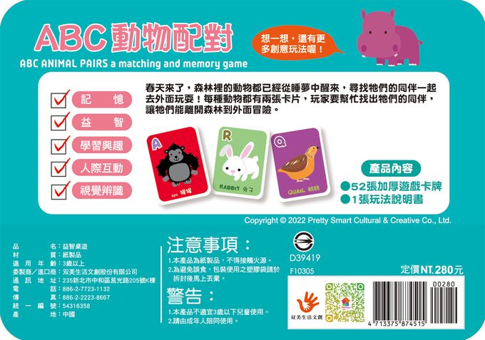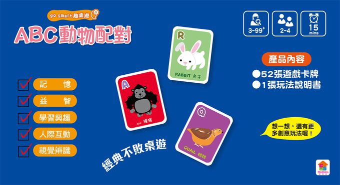 可愛圖案搭配ABC的26個字母設計,是桌遊也可以是學習卡哦!