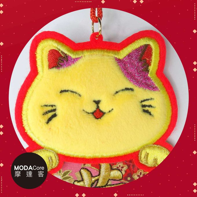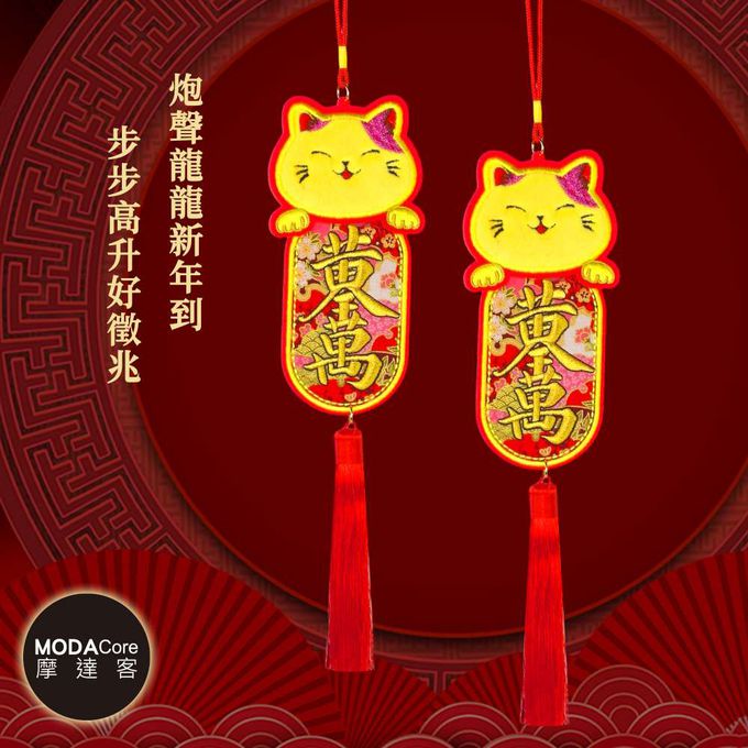 品名:摩達客◉春節開運招財◉刺繡絨毛黃金千萬兩招財貓流蘇掛飾吊飾