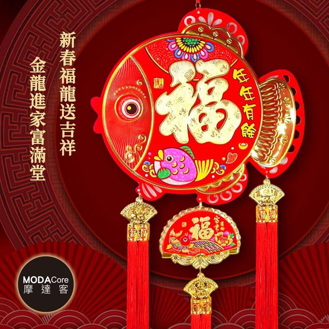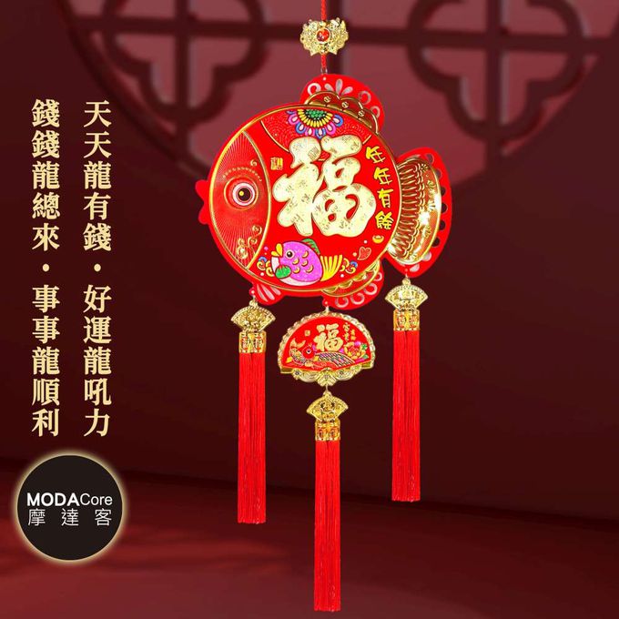 品名:摩達客◉春節開運招財◉立體福字紅金魚年年有餘流蘇掛飾吊飾