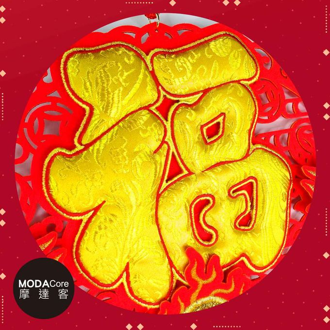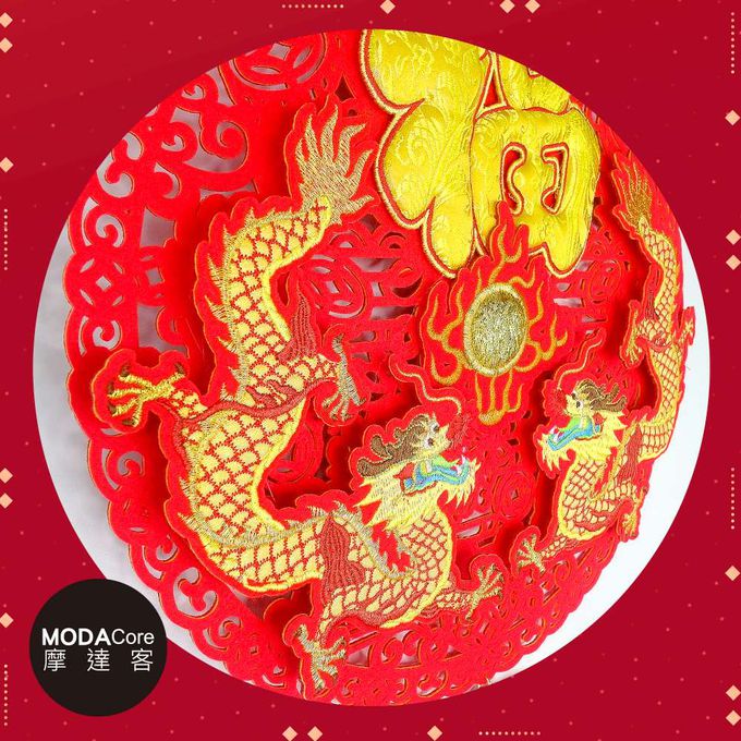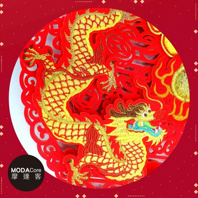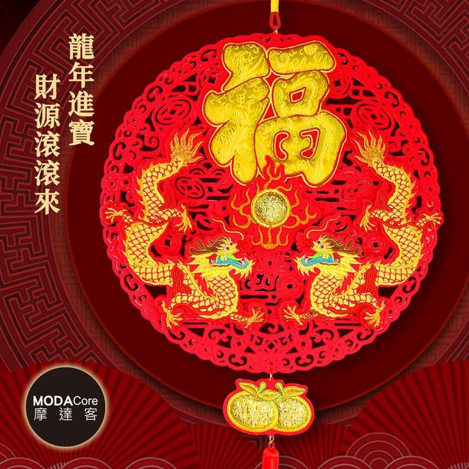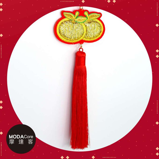 品名:摩達客◉春節開運招財◉質感刺繡雙龍獻瑞黃福金桔流蘇掛飾吊飾