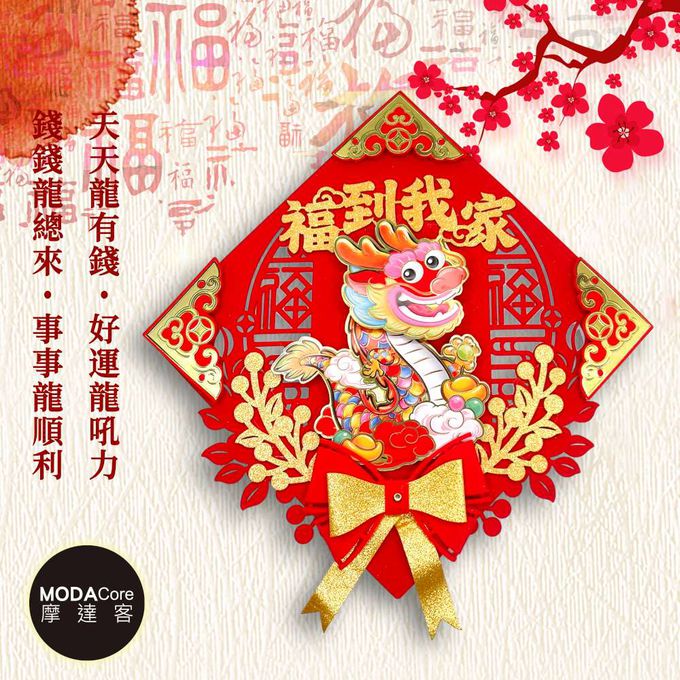 品名:摩達客◉春節開運招財◉金箔祥龍福到我家角花蝴蝶結斗方-單片春聯