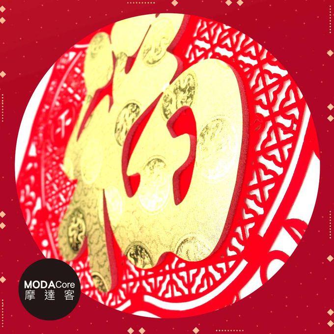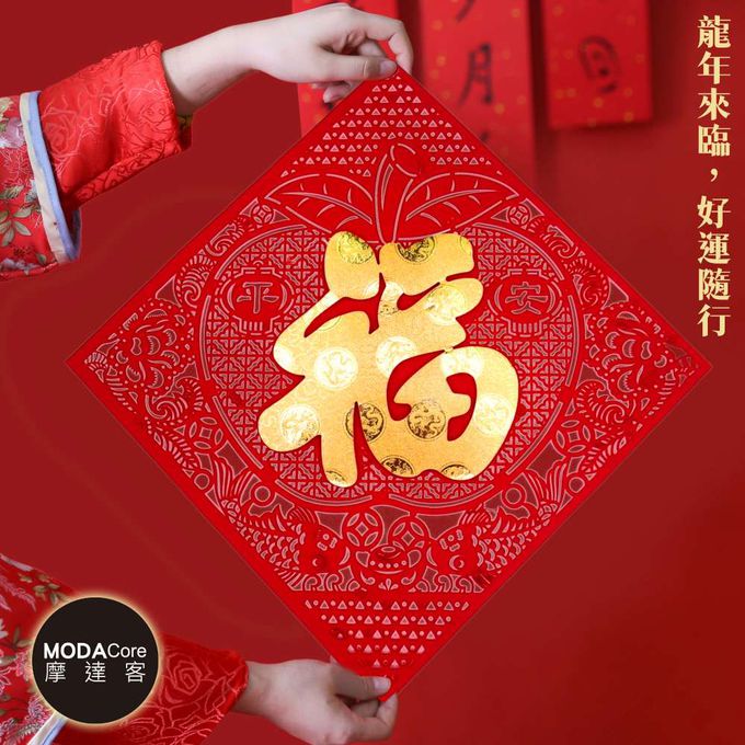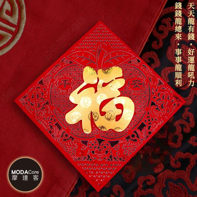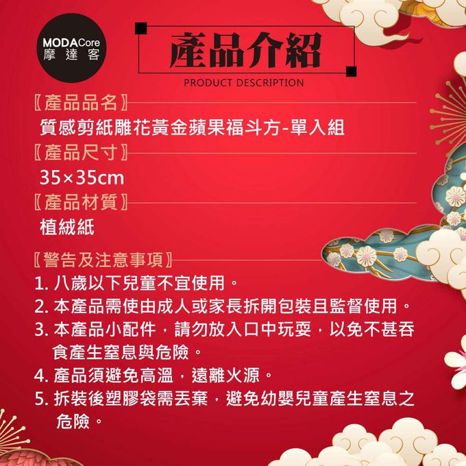 品名:摩達客◉春節開運招財◉質感剪紙雕花黃金蘋果福斗方-單片春聯