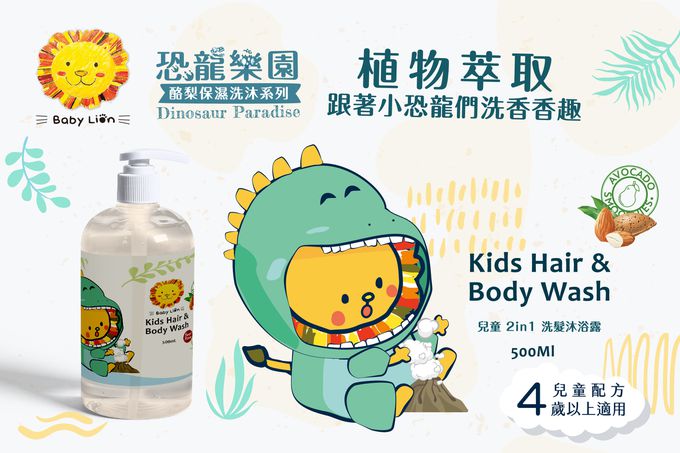 【獅子寶寶】酪梨保濕洗沐系列 兒童 2in1 洗髮沐浴露 500mL