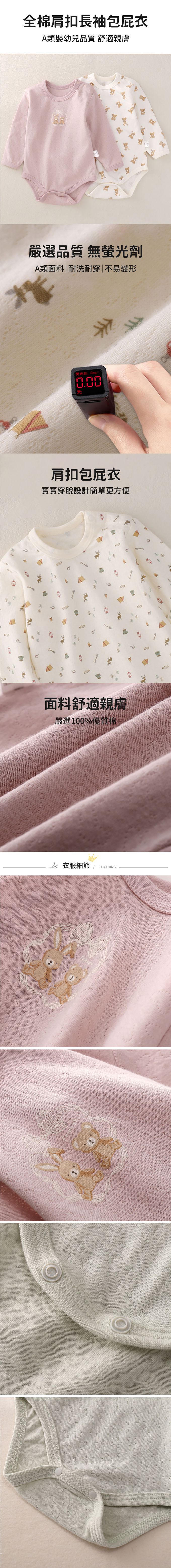 品名:2件入-空氣棉包屁衣 肩扣式長袖連身衣 緹花純棉