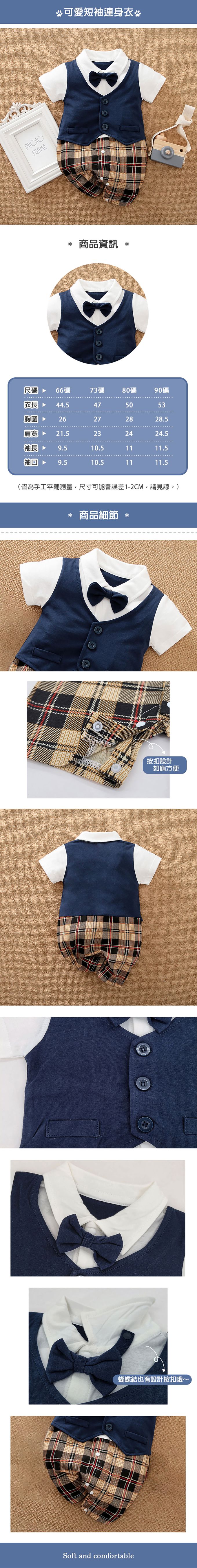 短袖造型連身包屁衣 童裝 嬰兒連身衣 藏青紳士-藏青紳士款