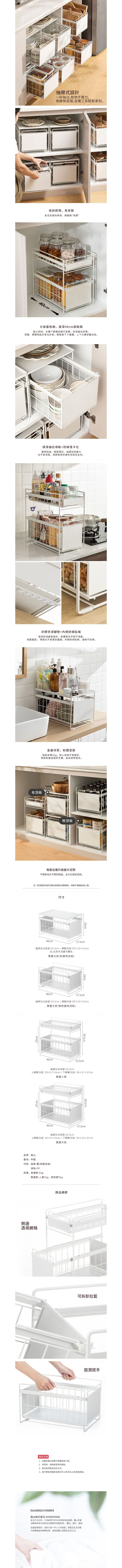 詳細尺寸:寬40×深22.5×高39.5cm、內徑:[上網籃]寬39×深17×高6cm、[下網籃]寬39×深17×高17cm