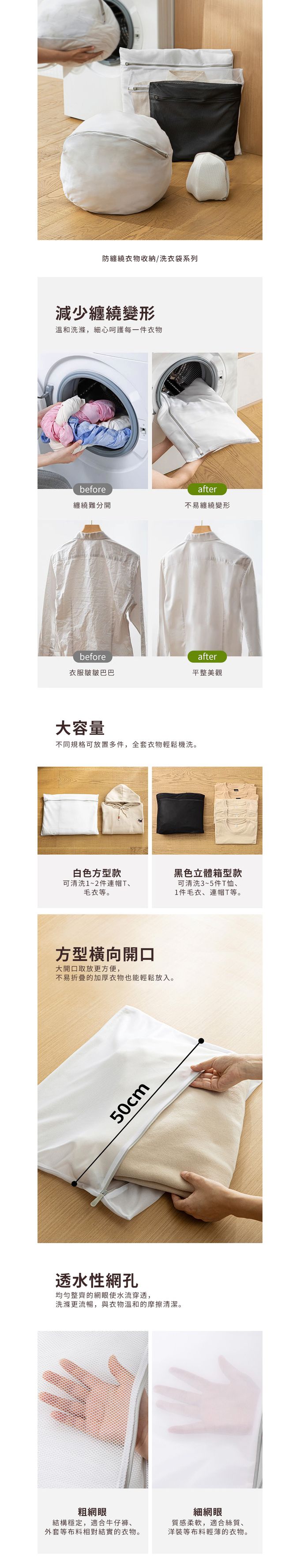 方型防纏繞衣物收納/洗衣袋-粗網眼-白-3入