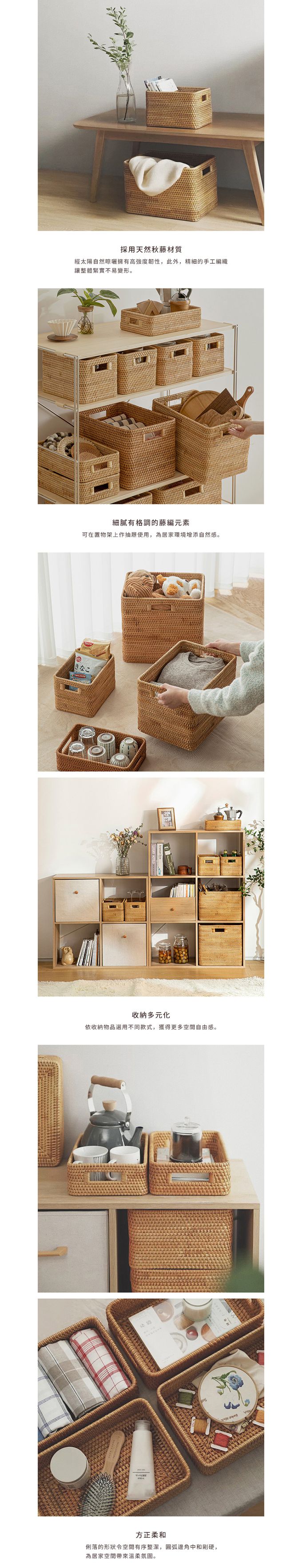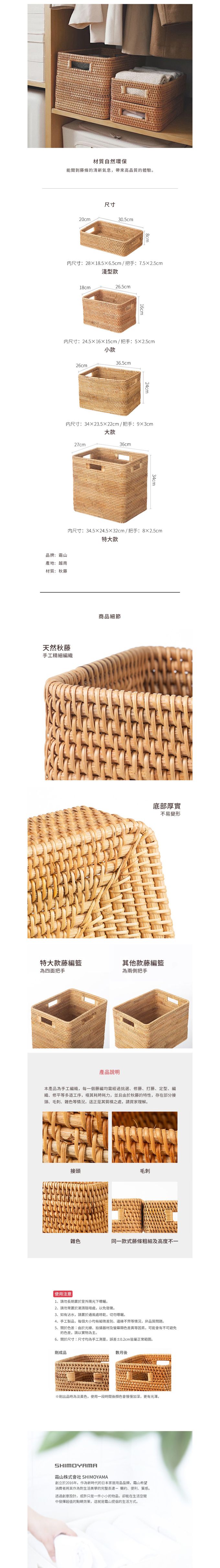 品名:無印風附提把藤編收納籃(小款)