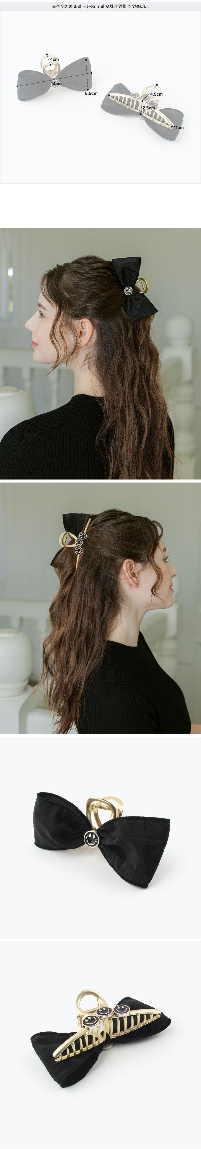 韓國 Chenny Bong Bong - 笑臉裝飾大蝴蝶結金屬抓夾-黑