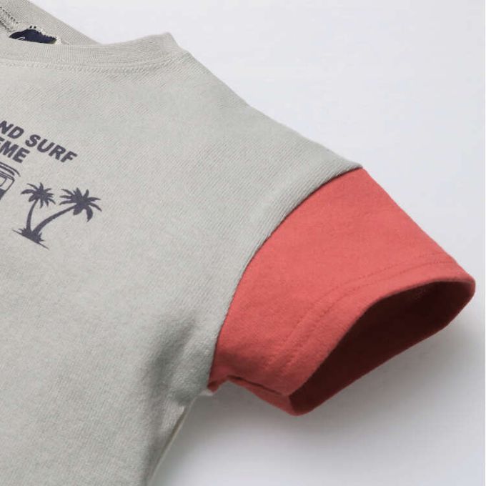 搭配袖子和背部的拼接色塊,是這款T恤亮點