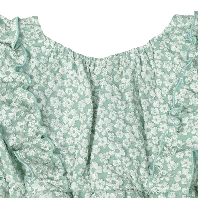 搭配兩肩的荷葉邊及腰部的小蝴蝶結